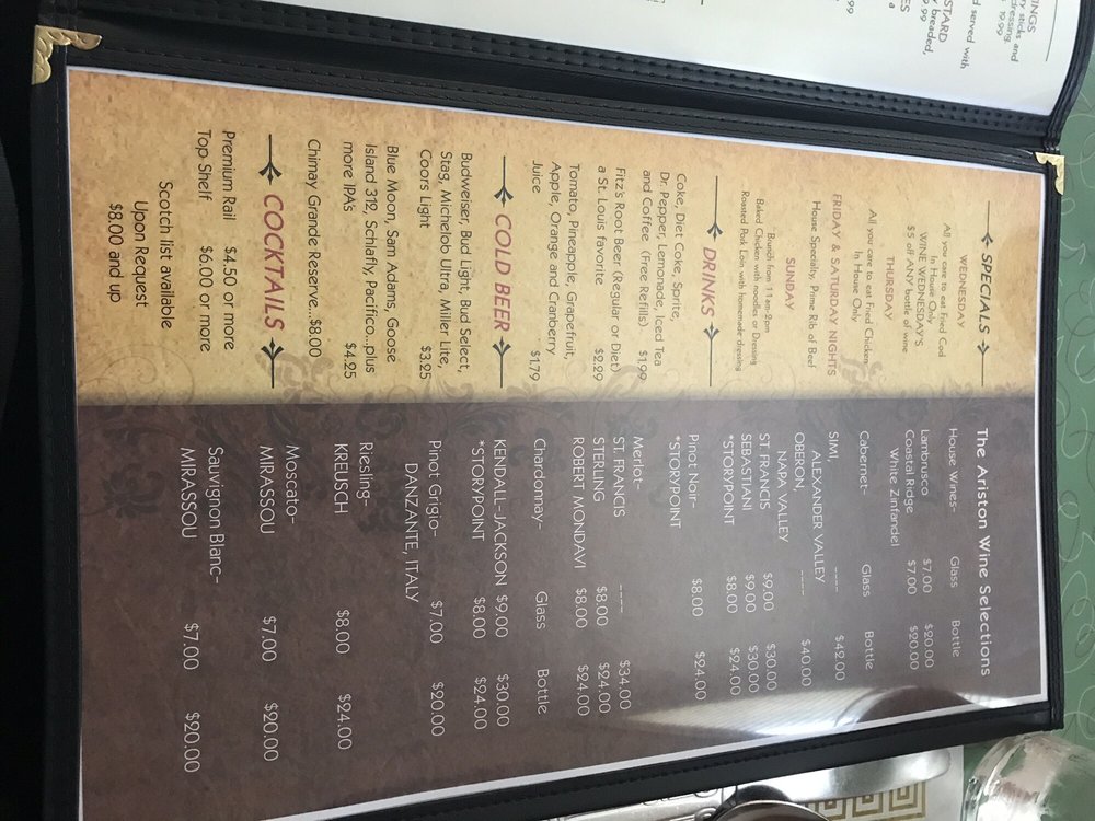 The Ariston Cafe Menu (2025 Update)